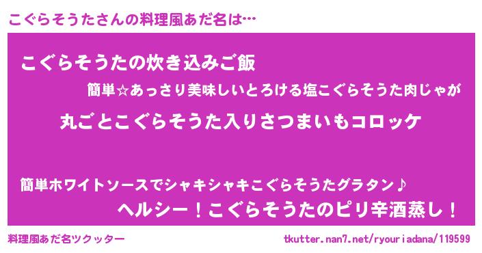 | 意味不明あだ名 | 『住所不定無職こぐらそうた(91歳)』 |