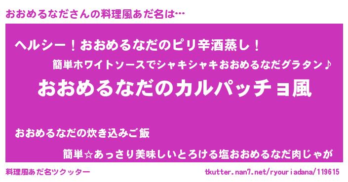 | ヒーロー風カッコイイあだ名 | 『仮面オオダー』『最強戦士オオメルナダ』 |