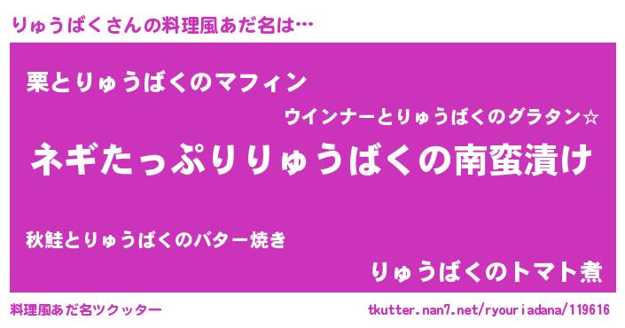 | 男性向けラノベタイトル風あだ名 | 『リュウバクアートオンライン』 |