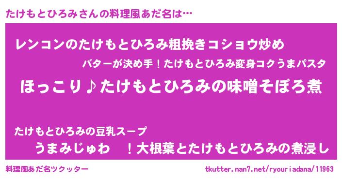 | ヒーロー風カッコイイあだ名 | 『スーパータケモトヒロミ』 |
