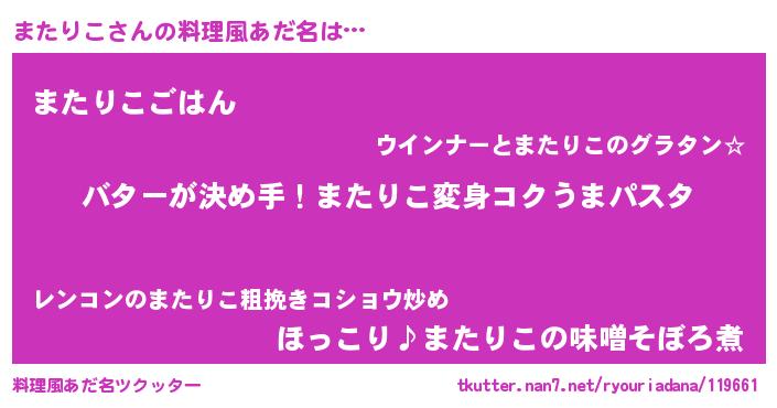 | 女子向けラノベタイトル風あだ名 | 『またりこ恋絵巻』『またりこ伯爵の花嫁』 |