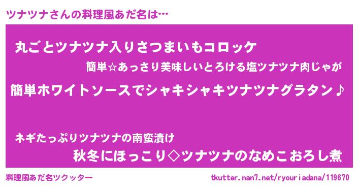 | 胡散臭い通販商品みたいなあだ名 | 『全米が絶賛したサプリメント…その名も「ツナツナ」』 |