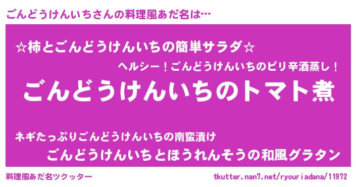 | 女子向けラノベタイトル風あだ名 | 『ごんどうけんいち夫妻のなれそめ』 |