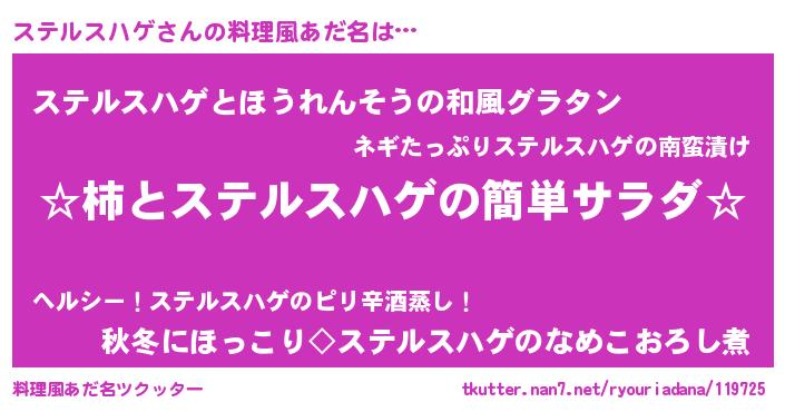 | 恥ずかしいあだ名 | 『プリティーステルスハゲ』『ステちん』 |
