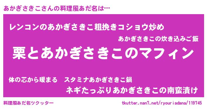 | 欧米人風あだ名 | 『アンジェラ・あかぎさきこ』 |