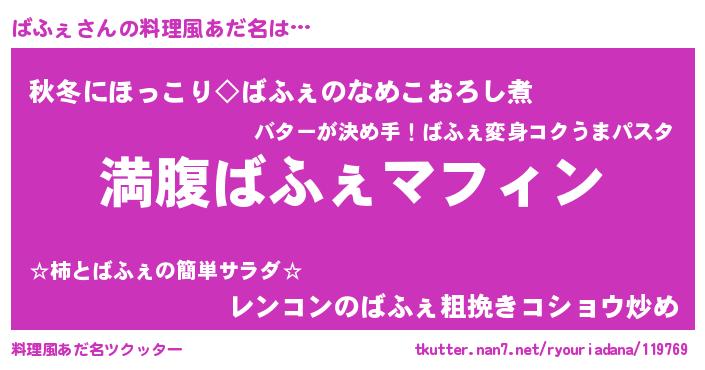 | 意味不明あだ名 | 『永久保存ばふぇ』『自称ばふぇ』 |