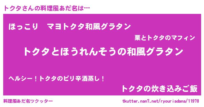 | 女子向けラノベタイトル風あだ名 | 『トクタの玉の輿計画!』『闇のトクタ』 |