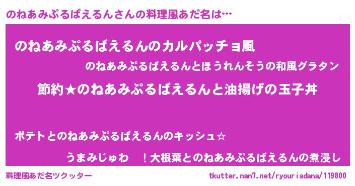 | 男性向けラノベタイトル風あだ名 | 『のねあみぷるばえるんの憂鬱』 |