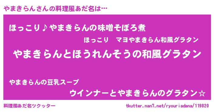 | 女子向けラノベタイトル風あだ名 | 『やまきらんの玉の輿計画!』 |