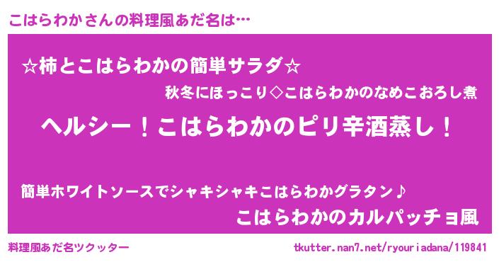 | 意味不明あだ名 | 『自称こはらわか』『ペロリンこはらわか』 |