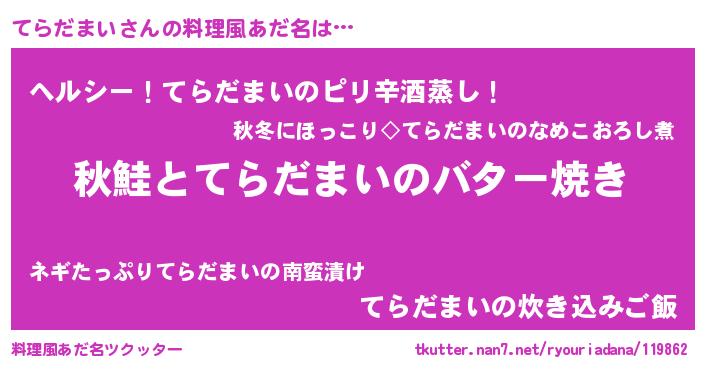 | 意味不明あだ名 | 『永久保存てらだまい』『自称てらだまい』 |