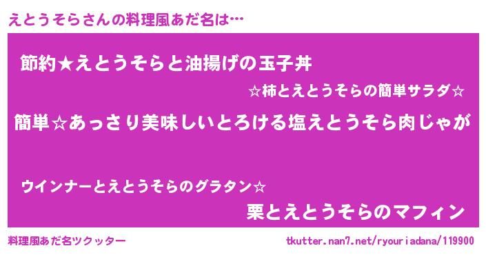 | ヘコむあだ名 | 『えとうそら(笑)』『えとにゅー』 |