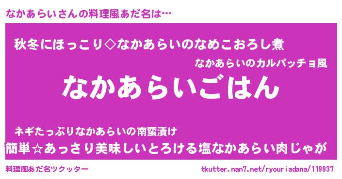 | 意味不明あだ名 | 『なめこ科なかあらい属』 |