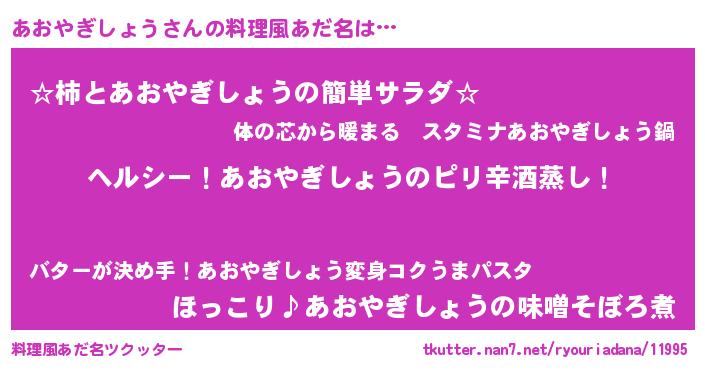 | 胡散臭い通販商品みたいなあだ名 | 『芸能人もオススメする高麗人参…その名も「あおやぎしょう」』 |