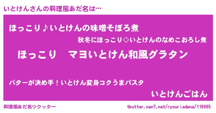 | ヒーロー風カッコイイあだ名 | 『仮面イトダー』『スーパーイトケン』 |