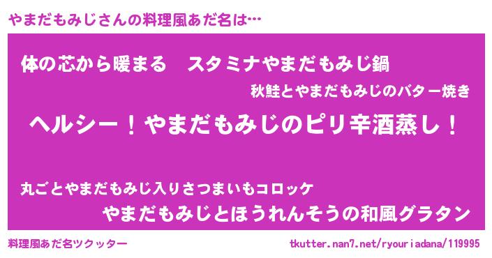 | ヘコむあだ名 | 『酢こんぶ』『やまだもみじ(遠い目)』 |