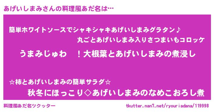 | ポケモン風あだ名 | 『アゲイダネ』『ヒアゲイシマミ』 |