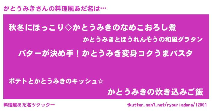 | 肩書あだ名 | 『かとうみき助教授』『かとうみき艦長』 |