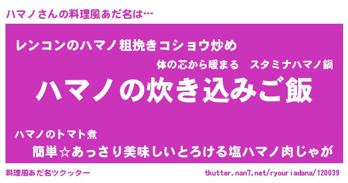 | ヘコむあだ名 | 『ハマノ(苦笑)』『牛乳』『ハマもー』 |