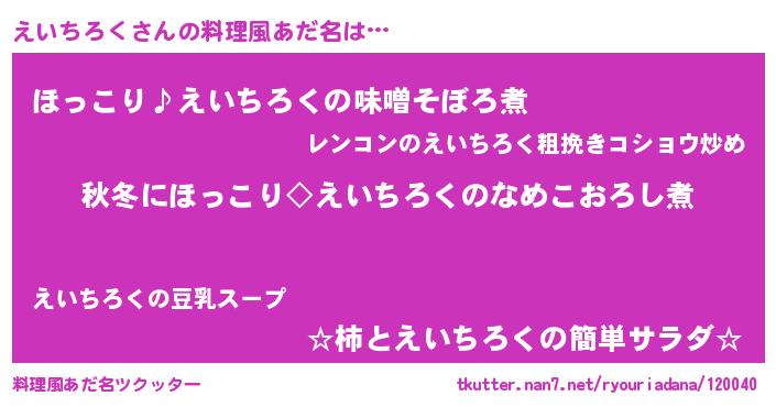 | 恥ずかしいあだ名 | 『プリティーえいちろく』『エイリンリン』 |