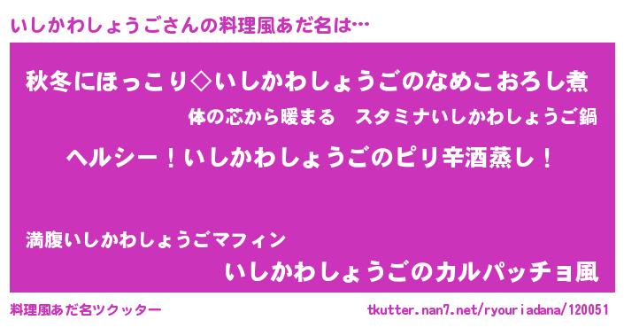 | 意味不明あだ名 | 『自称いしかわしょうご』 |