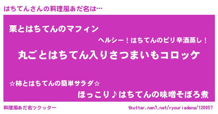 | 男性向けラノベタイトル風あだ名 | 『魔弾の王とはちてん』『はちてんの憂鬱』 |