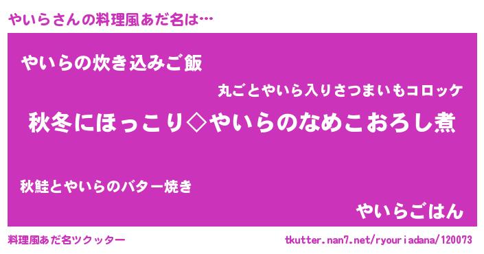 意味不明あだ名 | 『つくし科やいら属』『永久保存やいら』 |