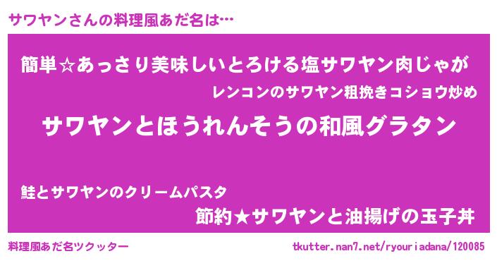 | 胡散臭い通販商品みたいなあだ名 | 『来世でも幸せになれる水素水…その名も「サワヤン」』 |