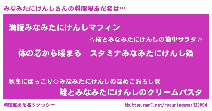 | 男性向けラノベタイトル風あだ名 | 『やはりみなみたにけんしの青春ラブコメはまちがっている 』 |