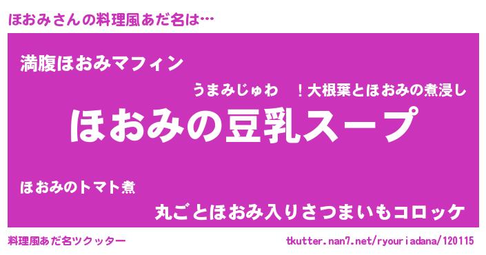 | 胡散臭い通販商品みたいなあだ名 | 『信頼と実績のサプリメント…その名も「ほおみ」』 |