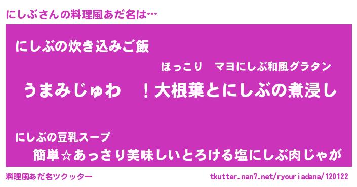 | ヘコむあだ名 | 『酢こんぶ』『にしぶ(震え声)』 |
