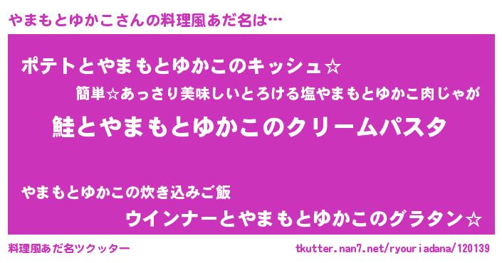 | 女子向けラノベタイトル風あだ名 | 『死神やまもとゆかこの再婚』 |