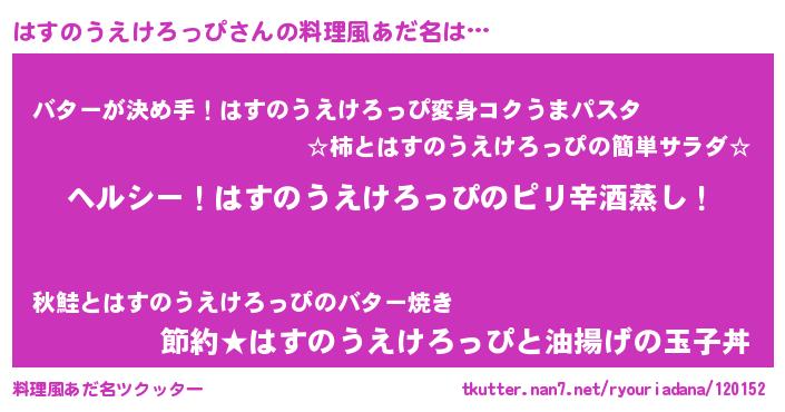 | 胡散臭い通販商品みたいなあだ名 | 『テレビで話題の冬虫夏草…その名も「はすのうえけろっぴ」』 |