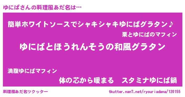 | 意味不明あだ名 | 『もやし科ゆにば属』『永久保存ゆにば』 |