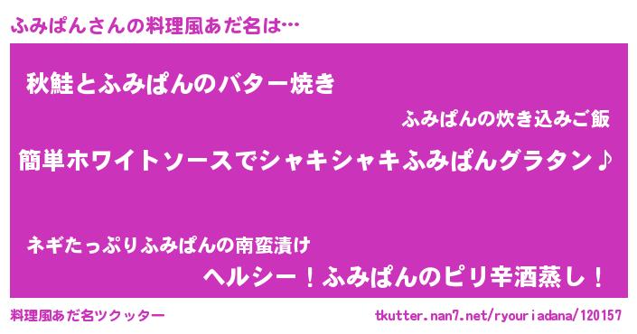 | ヘコむあだ名 | 『ふみぷりん』『ふみぱん(笑)』 |