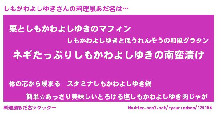 | ヘコむあだ名 | 『しもふぇ~』『しもかわよしゆき(笑)』 |