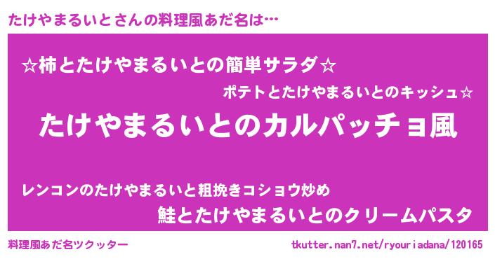 | ヘコむあだ名 | 『たけっちょ』『たけやまるいと(震え声)』 |