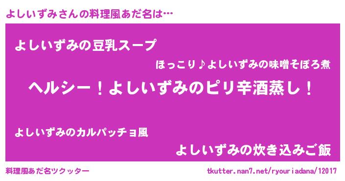 | 男性向けラノベタイトル風あだ名 | 『Re:よしいずみから始める異世界生活』 |