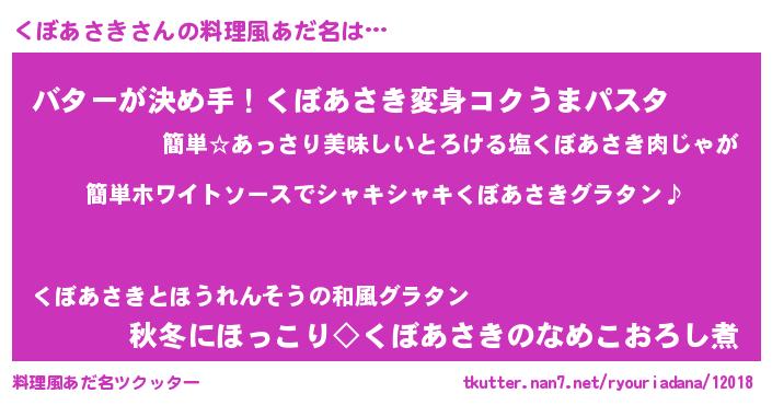 | 胡散臭い通販商品みたいなあだ名 | 『全米が絶賛したサプリメント…その名も「くぼあさき」』 |