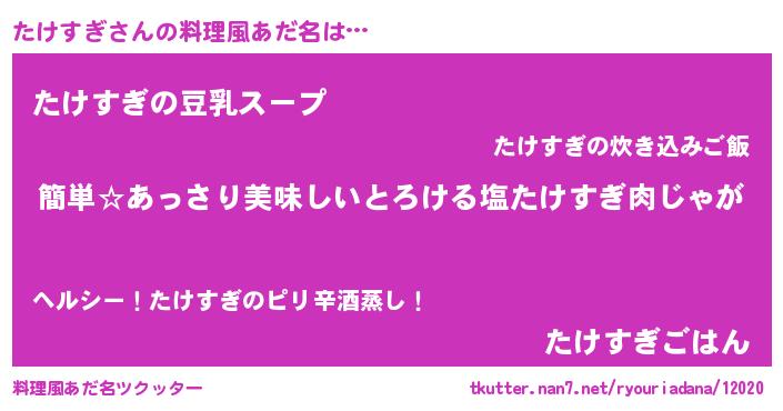 | ヒーロー風カッコイイあだ名 | 『ネオタケスギ』『黄金騎士タケ』 |