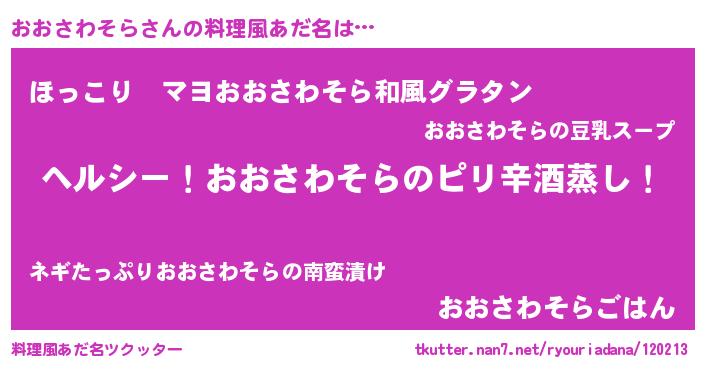 | 意味不明あだ名 | 『自称おおさわそら』 |