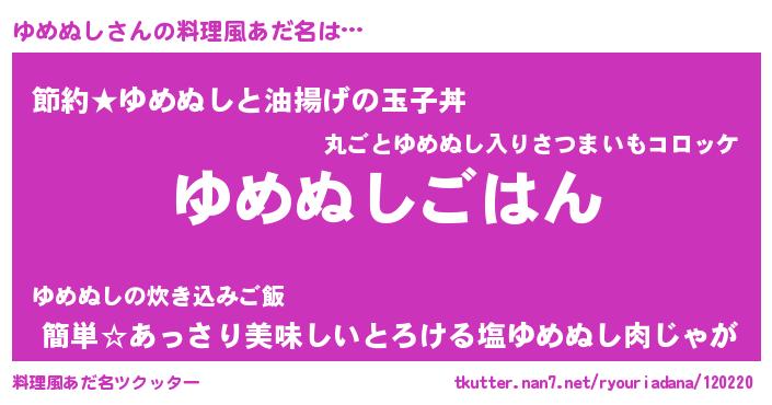 | ヘコむあだ名 | 『ゆめにゅー』『ゆめぬし(震え声)』 |