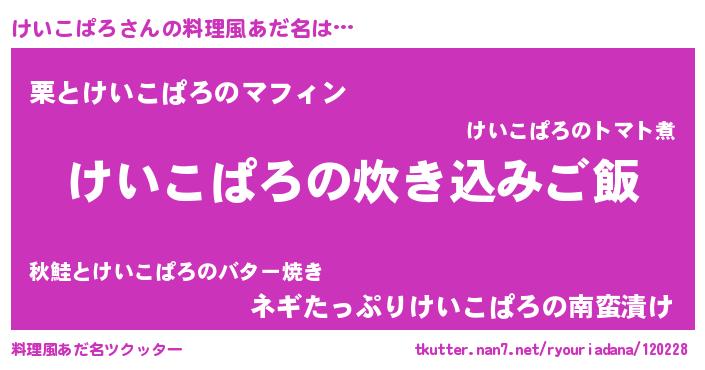 | ヘコむあだ名 | 『けいもー』『けいこぱろ(笑)』 |