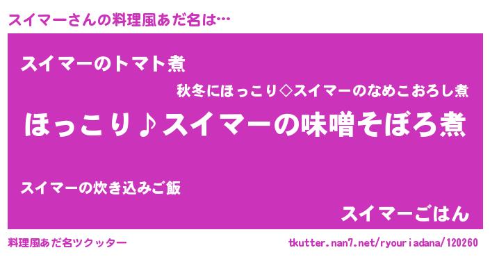| ヒーロー風カッコイイあだ名 | 『スーパースイマー』『最強戦士スイマー』 |