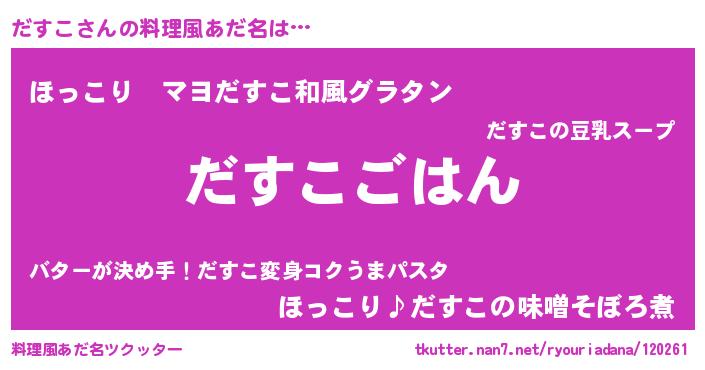 | ピコ太郎風あだ名 | 『ダコ八郎』『ダス六郎』『ダダ太郎』 |
