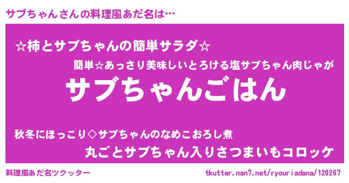| ヒーロー風カッコイイあだ名 | 『仮面サブダー』『ネオサブチャン』 |