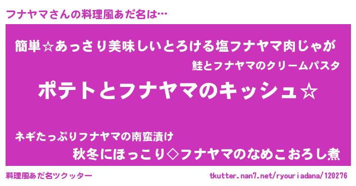 | ヘコむあだ名 | 『フナっぺ』『フナヤマ(遠い目)』 |