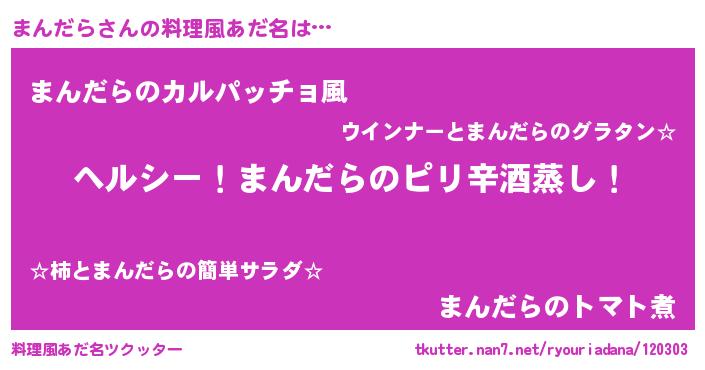 | 女子向けラノベタイトル風あだ名 | 『闇のまんだら』『まんだら伯爵の花嫁』 |