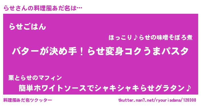 | ヒーロー風カッコイイあだ名 | 『愛の使者らせ』『黄金騎士ラセ』 |