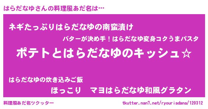 | ポケモン風あだ名 | 『ヒハラダナユ』『ハラチュウ』 |